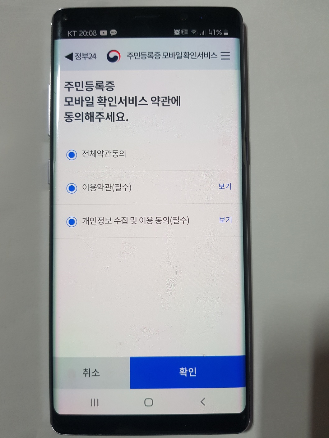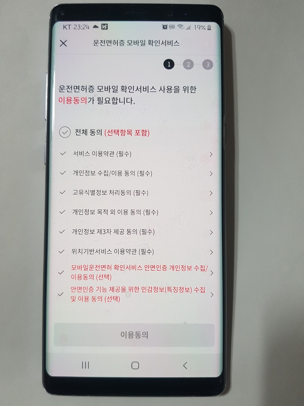 3. 실물 운전면허증 등록하기, 약관 동의