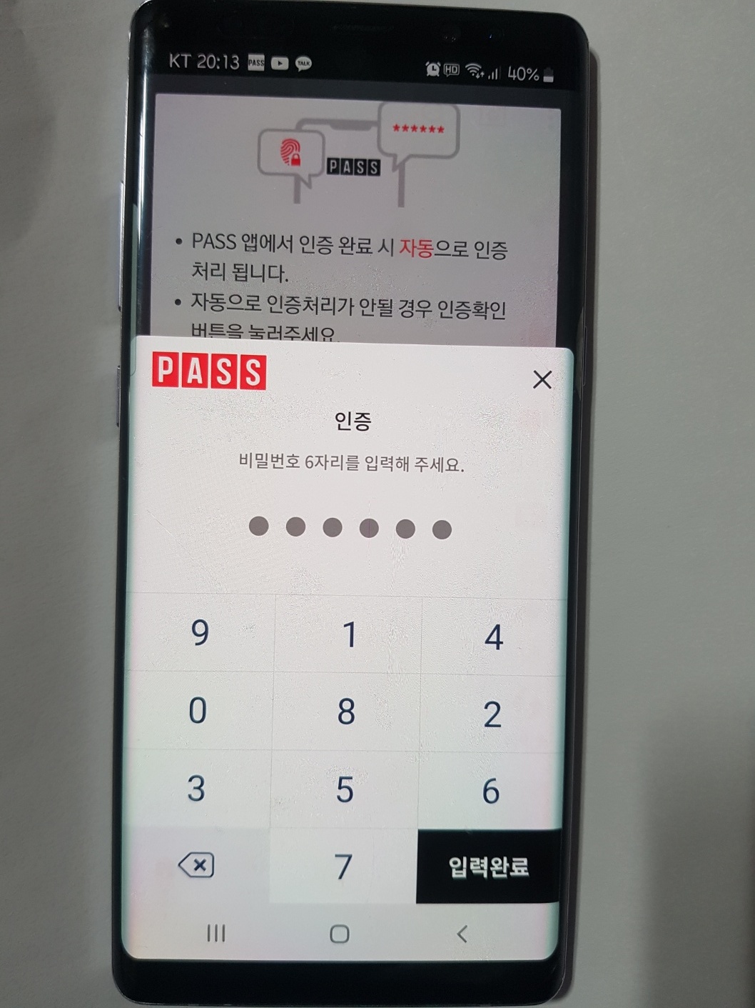 7. 비밀번호 6자리 입력 후 생체 인증(지문) 등 추가등록 가능하고 생략 가능)
