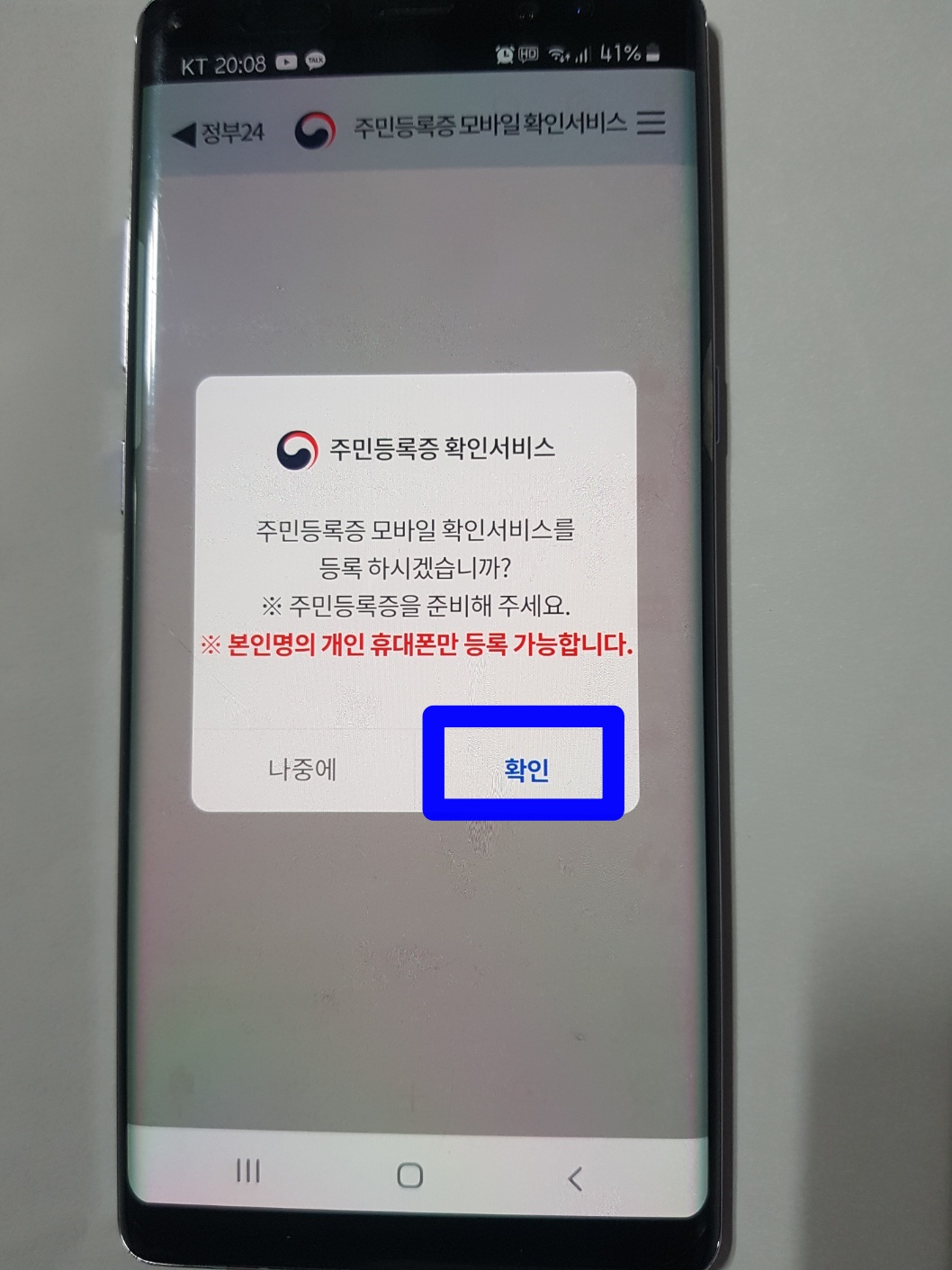 모바일 주민등록증 발급 방법