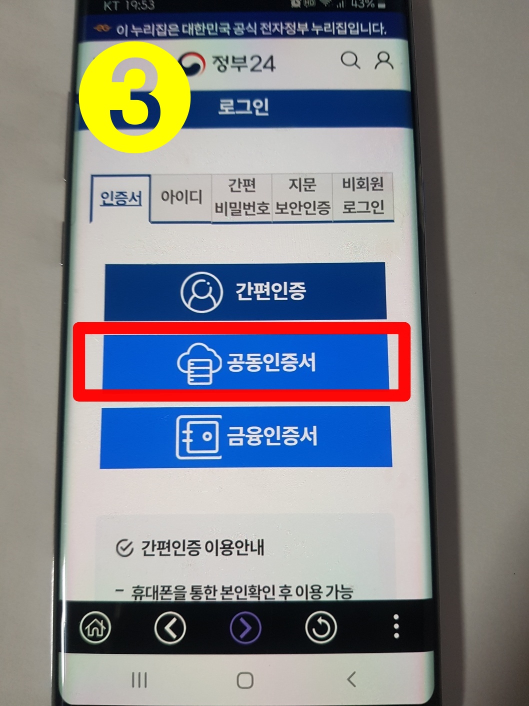 3. 위에 여러 인증 경로 중에 편한게 로그인 하기( 저의 경우 공동인증서로 로그인했는데